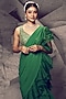 Featuring a green sharara saree in georgette base with organza ruffle detailing. It is paired with a silk blouse having mirror, gold kasab thread and gota embroidery. Style it with a statement diamond set to complete the look.