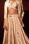 Featuring an ivory lehenga in brocade silk and raw silk base with embroidered. It is paired with an embroidered blouse and a jacket. Accentuate it with statement jewellery and heels for a wedding, sangeet or engagement ceremony.