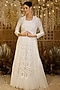 Featuring an ivory hexagon jacket in chanderi and net base with 3D sequins and gota embroidery. It is paired with matching gota embroidered kurta and palazzo pants.