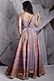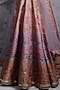 Featuring a lilac lehenga in raw silk base with floral print and gold border. It is paired with matching pearls embroidered blouse, a stones highlighted belt and a net dupatta.