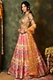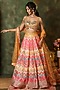 Featuring a multi-colored lehenga in raw silk base with mirror work, mirror tassels, gota lace, thread, swarovski embroidery and ikat print. It is paired with an embroidered blouse and a net dupatta. Accentuate it with meenakari or kundan polki jewellery and block heels for weddings or sangeet ceremonies.