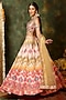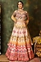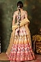Featuring a multi-colored lehenga in raw silk base with mirror work, mirror tassels, mirror lace, thread embroidery and ikat print. It is paired with an embroidered blouse and a net dupatta. Accentuate it with meenakari or kundan polki jewellery and block heels for weddings or sangeet ceremonies.