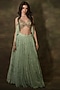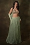 Featuring a pastel green lehenga in georgette base with mirror embroidery and print. It is paired with a hand embellished blouse and a jacket. Accentuate it with statement jewellery and heels for a wedding or engagement ceremony.