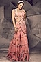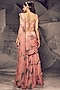Featuring a pastel pink floral sharara saree in georgette base with sequin work and floral brooch embroidery. It is paired with a blouse having mirror work. Style it with a statement diamond set to complete the look.
