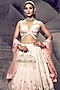 Featuring a pastel pink lehenga in georgette base with kasab thread, beads and sequins embroidery. It is paired with a sequins blouse having tassels and a net dupatta. Style it with a statement diamond set to complete the look.