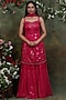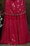 Featuring a pink kurta in raw silk base with mirror and resham embroidery. It is paired with matching georgette embroidered sharara pants and a net dupatta.