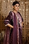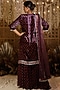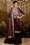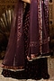 Featuring a purple kurta in chanel velvet base with floral print, mirror and resham thread embroidery including shell highlights. It is paired with matching georgette sharara pants and a net dupatta.