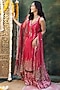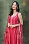 Featuring a rani pink straight kurta in raw silk base with mirror and golden zari work. It is paired with dola silk chevron pattern sharara and a soft net dupatta. Accentuate it with kundan earrings and juttis for festive celebrations or sangeet ceremonies.