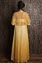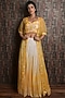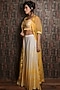 Featuring a yellow jacket in organza base with resham and mirror embroidery. It is paired with matching silk palazzo pants having tie-dye print and a raw silk blouse.