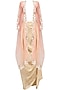 Baby Pink Floral Embroidered Cape and Gold Drape Skirt Set