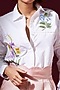 Featuring a white shirt in poplin base with botanical and lace embroidery. It is paired with contrasting blush pink organza pants having scallop details.