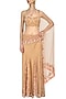 Featuring a peach saree in net base with sequins and cutdana floral embroidery on the kalis and edges highlighted with tassel detailing on pallu.
