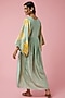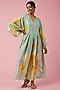Featuring an aqua dress in bemberg crepe base with floral print and embellishments.