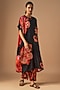 Featuring a black tunic in bemberg silk base with print, broad sleeves and hand embroidery. It is paired with straight pants. Accentuate it with minimal jewellery and heels for a complete look.