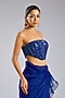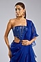 Featuring a blue draped skirt saree in organza base. It is paired with a blouse. Accentuate it with statement earrings and heels for a festive occasion, cocktail, sangeet, wedding ceremony or glamorous celebrations.