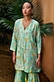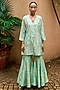 Featuring a blue jacket in premium silk blend base with paisley motifs, zardosi and sequins embroidery. It is paired with flared sharara pants and a dupatta. Accentuate with statement earrings and heels for a festive occasion, wedding or sangeet ceremony.