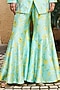 Featuring a green blazer in bemberg silk base with zardosi, pearl and beads embroidery. It is paired with sharara pants. Accentuate with statement earrings and heels for a cocktail or sangeet ceremony.