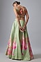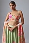 Featuring a green lehenga in natural bemberg silk base with hand embroidery and floral motif digital print. It is paired with a blouse having glass beads embellishment and a shimmer georgette printed dupatta. Accentuate it with statement jewellery and heels for weddings.