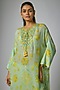 Featuring a green kaftan in crepe silk base with dori and thread embellishment. It is paired with pants. Accentuate it with statement earrings, embellished flats and a chic clutch for a relaxed yet elegant look, perfect for festive brunches or casual celebrations.