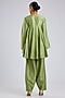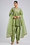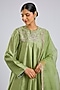 Featuring a green kurta in silk base. It is paired with pants and a dupatta. Accentuate it with polki dangler earrings and kolhapuri heels for a festive occasion, mehendi or family gathering.