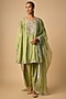 Featuring a green kurta in silk base with zari embroidery. It is paired with pants and a dupatta. Accentuate it with statement earrings, a sleek braid and metallic heels, perfect for festive occasions or mehendi ceremony.