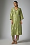 Featuring a green kurta in silk base with boota, mirror and zari embroidery. It is paired with pants. Accentuate it with statement earrings and heels for a festive occasion.