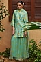 Featuring a light blue kurta in premium silk blend base with pearl, zardosi and sequins embroidery. It is paired with flared sharara pants and a dupatta. Accentuate with statement earrings and heels for a festive occasion, wedding or sangeet ceremony.