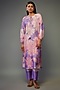 Featuring a mauve kurta in bemberg silk base with digital print and hand embroidery. It is paired with bemberg printed pants. Accentuate with statement jewellery and heels for a wedding or festive occasion.
