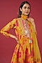 Featuring a mustard kurta in silk base with floral print and motifs work. It is paired with matching pants and a dupatta.