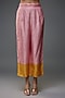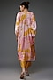 Featuring a mustard yellow and pink tunic in bemberg silk base with digital print, hand embroidery, raglan sleeves and tie-up detail. It is paired with pants. Style it with dangler earrings and heels for a festive look.
