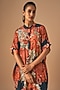 Featuring a navy top in bemberg crepe base with sequins embroidery. It is paired with silk printed pants. Accentuate it with minimal jewellery and heels for a complete look.