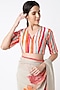Featuring a nude shimmer saree in georgette base. It is paired with a matching floral blouse. Accentuate it with statement earrings and heels for weddings, sangeet ceremonies or festive occasions.