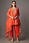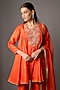 Featuring an orange kurta in silk base. It is paired with pants and a dupatta. Accentuate it with jewellery and heels for a festive occasion, wedding or sangeet ceremony.