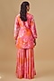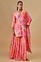 Featuring a peach kurta in bemberg silk base with floral digital print, zardosi and mirror hand embroidery. It is paired with sharara pants and a dupatta. Accentuate it with statement jewellery and heels for a sangeet or wedding ceremony.