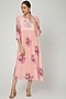 Featuring a peach tunic in bemberg crepe base with floral print including sequins and zardosi embroidery. It has 3/4th sleeves.