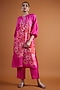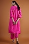 Featuring a pink tunic in bemberg silk base with digital print, raglan sleeves, front tie-up detailing and hand embroidery. It is paired with pants. Accentuate it with dangler earrings and heels for a casual look or pooja ceremony.