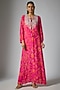 Featuring a pink maxi dress in crepe silk base with zari embroidery. Accentuate it dangler earrings and block heels for an evening look.