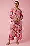 Featuring a pink kurta in bemberg crepe base with floral print. It is paired with matching striped pants.