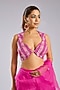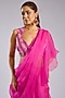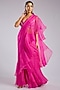 Featuring a pink draped skirt saree in organza base. It is paired with a blouse. Accentuate it with statement earrings and heels for a festive occasion, cocktail, sangeet, wedding ceremony or glamorous celebrations.