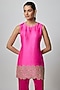 Featuring a pink short kurta in silk base. It is paired with pants. Accentuate it with statement earrings and heels for a festive occasion.