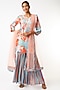 Featuring a powder blue and orange kurta in silk and bemberg crepe base with floral print and embroidery. It is paired with multi-colored sharara pants and a net dupatta. Accentuate it with dangler earrings and heels for a festive occasion or pooja ceremony.