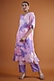 Purple Bemberg Silk Printed & Hand Embroidered Tunic Set