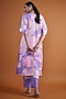 Featuring a purple tunic in bemberg silk base with natural print, broad sleeves and hand embroidery. It is paired with color-blocked straight pants. Accentuate it with dangler earrings and heels for a casual look or pooja ceremony.