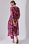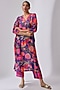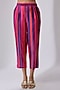 Featuring a purple kurta in bemberg silk base with beads and sequins hand embroidery, including print. It is paired with matching striped pants.