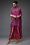 Featuring a purple kurta in silk base with boota work. It is paired with matching palazzo pants. Style it with dangler earrings and heels for a festive look.