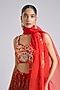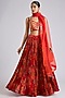 Featuring a red lehenga in bemberg crepe base with digital print. It is paired with a blouse having zariwork and an organza dupatta. Accentuate it with statement earrings and heels for a wedding or engagement ceremony.