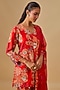 Featuring a red kurta in bemberg silk base with floral digital print, zardosi and mirror hand embroidery. It is paired with sharara pants and a dupatta. Accentuate it with statement jewellery and heels for a sangeet or wedding ceremony.
