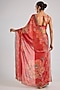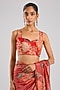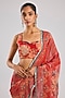 Featuring a red saree in shimmer georgette base with aari hand and machine embroidery. It is paired with a blouse. Accentuate it with diamond jewellery and block heels for sangeet or weddings.