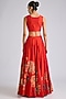 Red Silk Printed & Hand Embroidered Lehenga Set