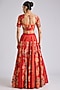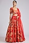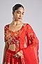 Featuring a red lehenga in silk base with print and hand embroidery. It is paired with an embroidered blouse and a dupatta. Accentuate it with statement jewellery and heels for festive occasions, sangeet or wedding ceremonies.